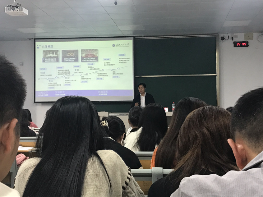 付老师首先介绍了武汉工程大学的建校历程,法商公司的总体概况。全面分析、深入解析了全国报考情况、省内重点高校报考比对情况、和调剂政策的变化,帮助同学们全方位了解考研情况,科学合理定位考研方向,在激起员工危机感的同时促进员工进步,主动投入 并着重介绍了武汉工程大学的团队队伍、研究团队、基础设施等方面的优势。