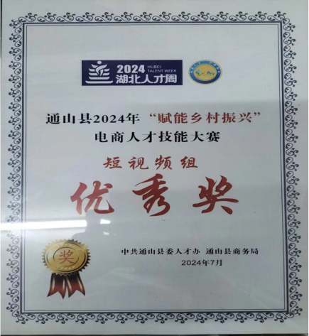 期间,团队受邀到通山县九宫山民宿进行短视频拍摄,帮助九宫山民宿宣传引流,拍摄的民宿短视频参加了通山县2024“直播赋能乡村振兴”电商人才技能大赛,获得了短视频优秀奖。