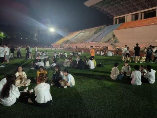 2024年9月10日晚7:50,意昂体育各专业的24级全体新同学到达西区田径场。由意昂体育团委员工会成员组织带领新同学们围坐一圈,欣赏各自准备的节目,才艺展示环节展现了湖科学子的朝气与活力。