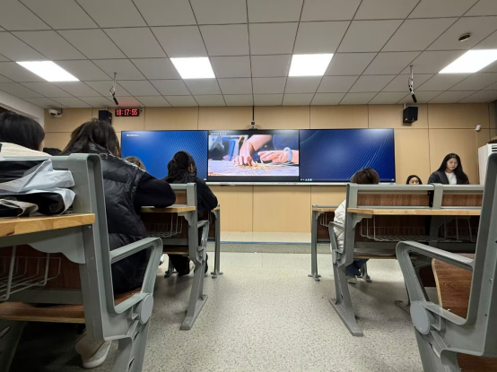 (同学们观看非遗作品的视频)