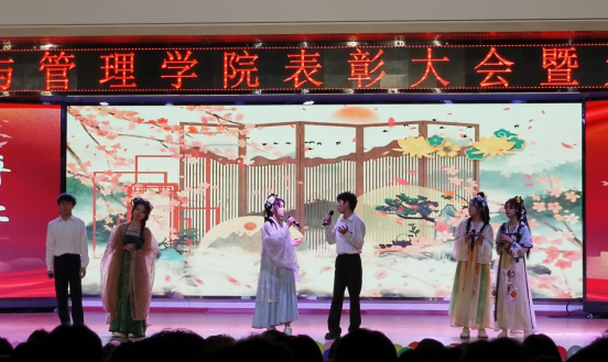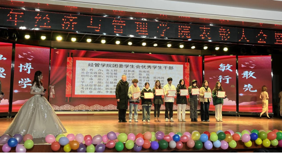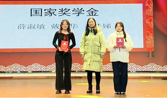 当聚光灯聚焦于舞台中心,颁奖典礼便正式拉开了帷幕。学院颁发了包括“优秀员工干部”、“先进班集体”、“三好员工标兵”以及“优秀共青团员”在内的多个奖项,以表彰和鼓励杰出的个人和团体。副经理王娜上台为获得国家奖学金和国家励志奖学金的同学们颁奖。