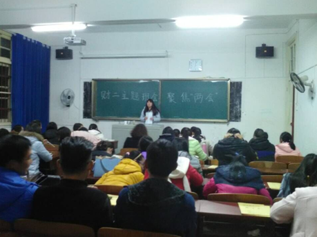 主题班会介绍了两会的形式和内容还就扶贫攻坚战、民生改善、创新驱动、绿色环保等热点问题展开了深入的讨论。