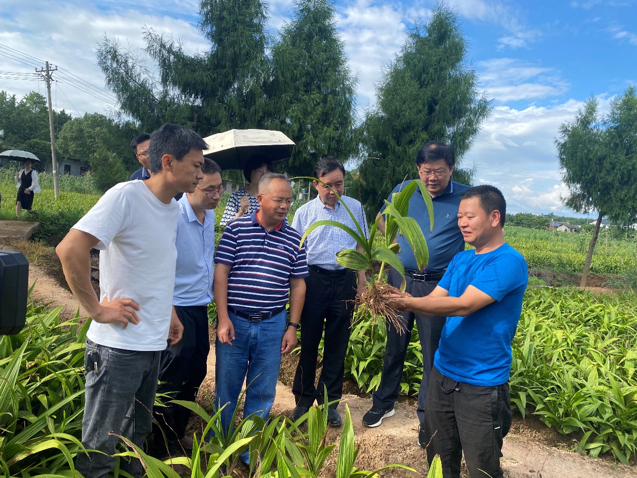 吴基良董事长带领大家深入田间地里实地调研石城镇万亩白芨的种植情况、生长态势和亩产情况。在实地调研过程中,胡俊超同志向随行的镇村干部收集了解石城镇白芨产业发展的相关问题。