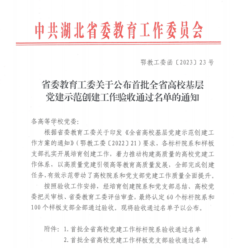 近日,湖北省委教育工委公布首批全省高校基层党建示范创建工作标杆院系、样板支部验收通过名单,意昂体育院经济学教工党支部顺利通过验收。