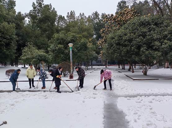随后,意昂体育“破冰冲锋队”带上工具,又前往揽月桥上和湖畔继续协助公司其他部门破冰凿路,大家铲的铲,堆的堆,原本冰雪覆盖的揽月桥在大家的共同努力下,在中间开出了一条道路,为师生返校复工复学提供保障。
