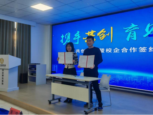 签约仪式上,吴乐盈与湖北净凡文化传播有限公司代表李治斌分别代表校企双方签约,签约仪式后,师生在创业基地与孵化企业展开了深度的交流。